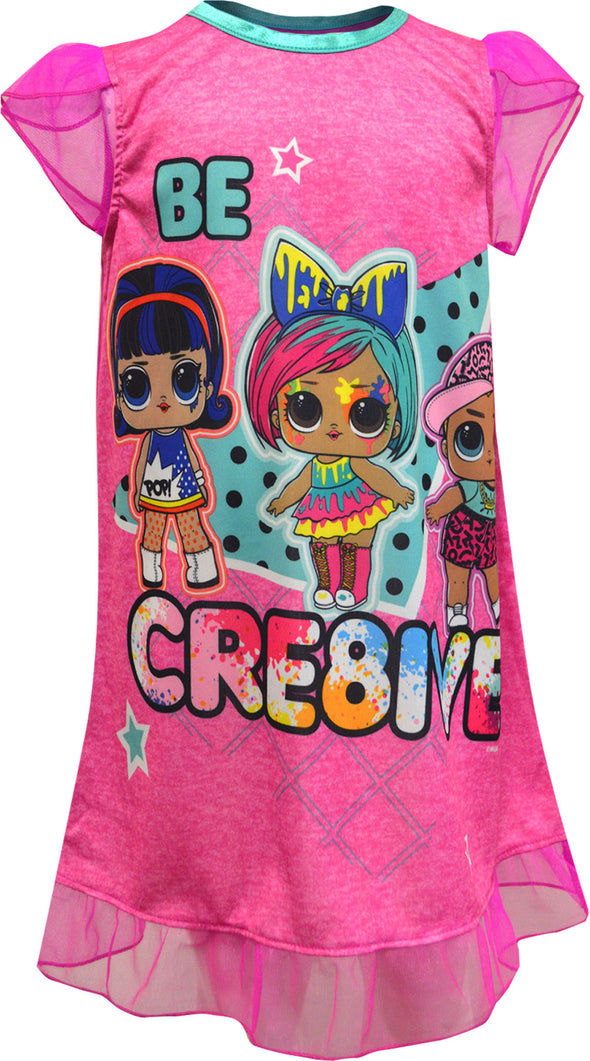 A must have for all LOL Surprise fans, especially those who love to express themselves! These flame resistant nightgowns for girls features her LOL Surprise favorite characters on a bright pink background. The best part is the special sheer ruffle sleeve and hem detailing. Machine wash in a lingerie bag to protect the sheer details.