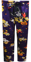 Simpsons for every occasion! These fun silky fleece lounge pants for men feature the lovable Simpson family dressed up for Halloween. The material is a super soft fabric that feels almost like velour. Machine washable with button fly and covered elastic waistband with drawstring tie and two side pockets.